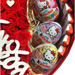 Склад: спрей троянда, кіндер сюрприз, кіндер шоколад, декор.