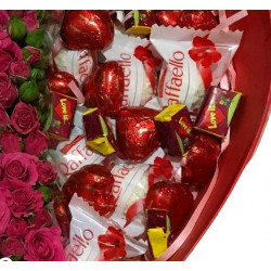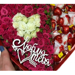 Яркое сердечко с ароматными цветами и любимыми сладостями. Отличный подарок для того, что бы подчеркнуть важность момента, теплоту чувств и очарование получательницы Ведь что может быть прекраснее живых цветов? Они всегда будут отличным подарком, комплиментом или просто способом порадовать близкого человека. А если вся эта прелесть упакована в красивую подарочную коробку, и ещё и приправлена сладостями, то восторг гарантирован! Таким сюрпризом можно удивить самого избалованного получателя! Яркие цветочки в замечательных коробках со сладостями — отличный подарок на любой повод.